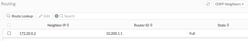With the above configuration on both firewalls, our OSPF adjacency has come up: