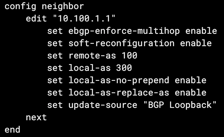 local-as-replace-aswill stop your real AS from being included in the AS path from the perspective of your peer (their received AS path from you). - Setting
