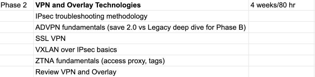This past week has been slightly different in that I did divert from my consistency in daily studying while I completed an overnight maintenance window for a network migration at work (and subsequently recovered from the sleep change). However, progress is still very consistent and after another 1-2 hours of studying tonight I will go ahead and move to the next section, VPN and Overlay Technologies: